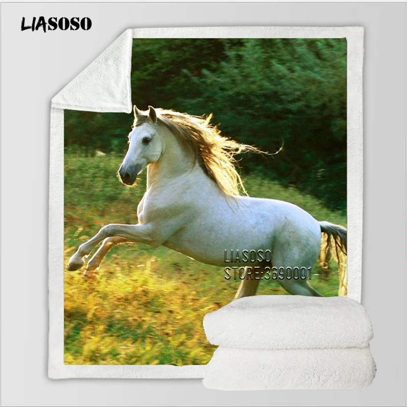 Review Top 3D Print White Brown Horse Running Throw Blanket Thin Quilt Soft Sofa Chair Bedding Home Indoor Sup