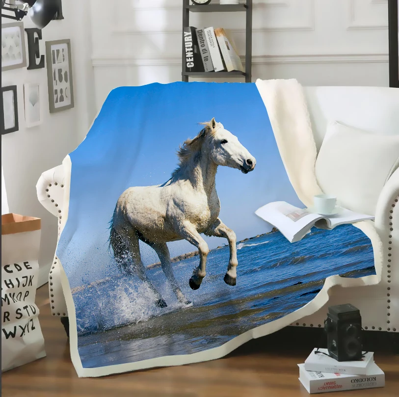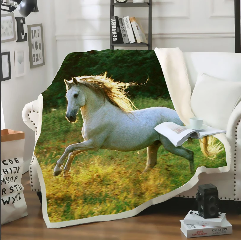 3D Print White Brown Horse Running Throw Blanket Thin Quilt Soft Sofa Chair Bedding Home Indoor Sup