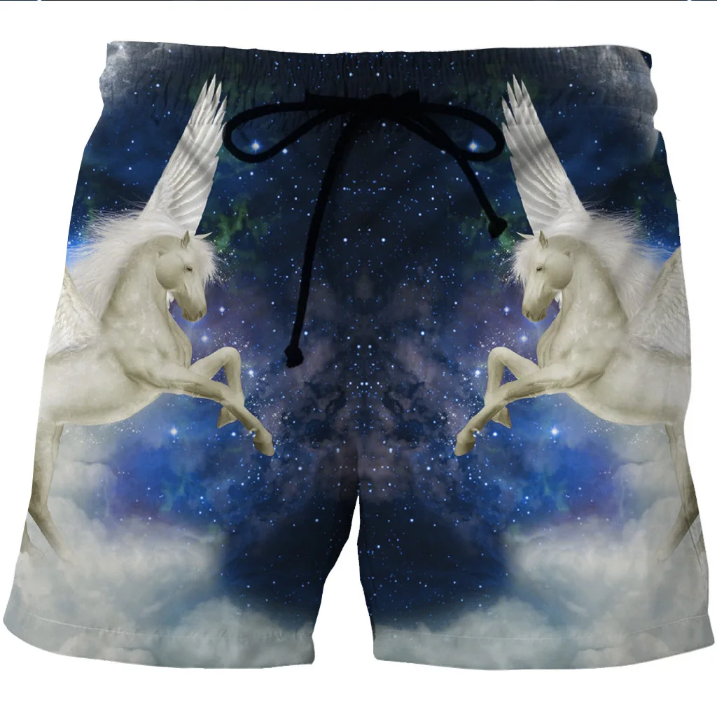 HIGH QUALITY Digital printing men's quick-drying beach shorts 3D magic horse printing on both sides of the pocke