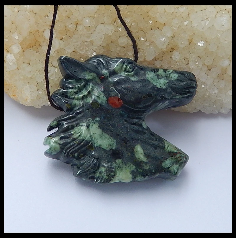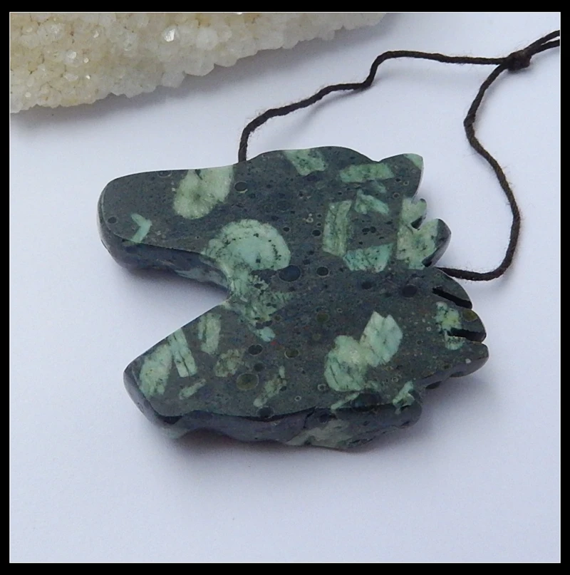 Hot Sale Natural Stone Carved Horse head Plant Necklace Pendant 39x43x9mm 29.66g Fashion Jewelry Ca