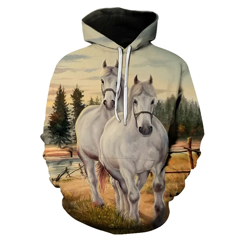 All Over Printed 3D Horse Hoodie Hoodies Men Women Long Sleeve Sportswear Tracksuit Casual Pullover