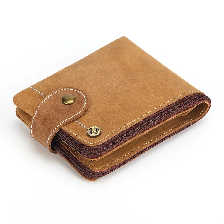 Best Quality New Style Hot Selling RFID MEN'S Wallet Short Crazy Horse Cow Leather Wallet Oil Wax Leather Zipper