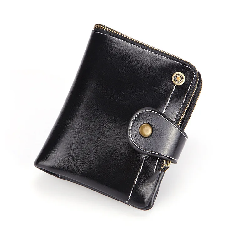 Best Supply of Goods MEN'S Wallet RFID Leather Wallet Short Crazy Horse Cowhide Zipper Bag Large Capacit