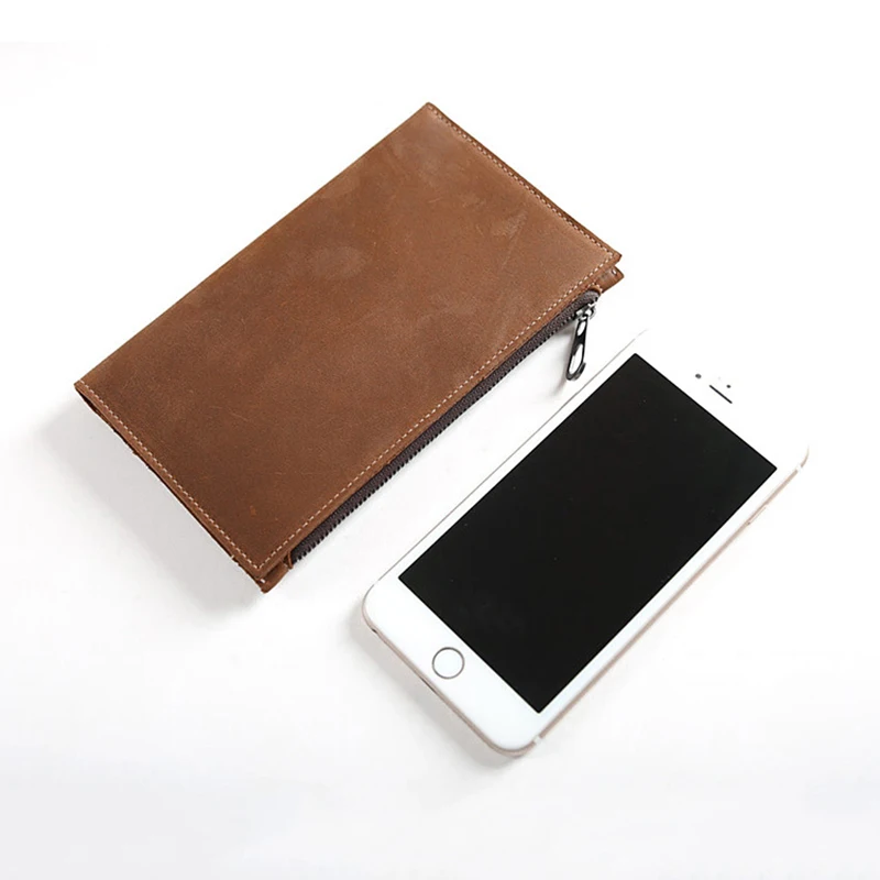 Vintage Genuine Leather Passport Wallet Men Crazy Horse Cowhide Male Long Wallets Purse Cover Card