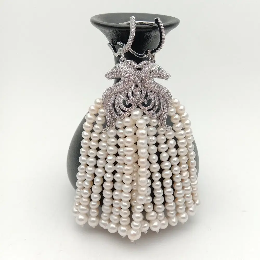 Best Women's White Pearl White Golden Plated Cz Pave Sea Horse Earrings