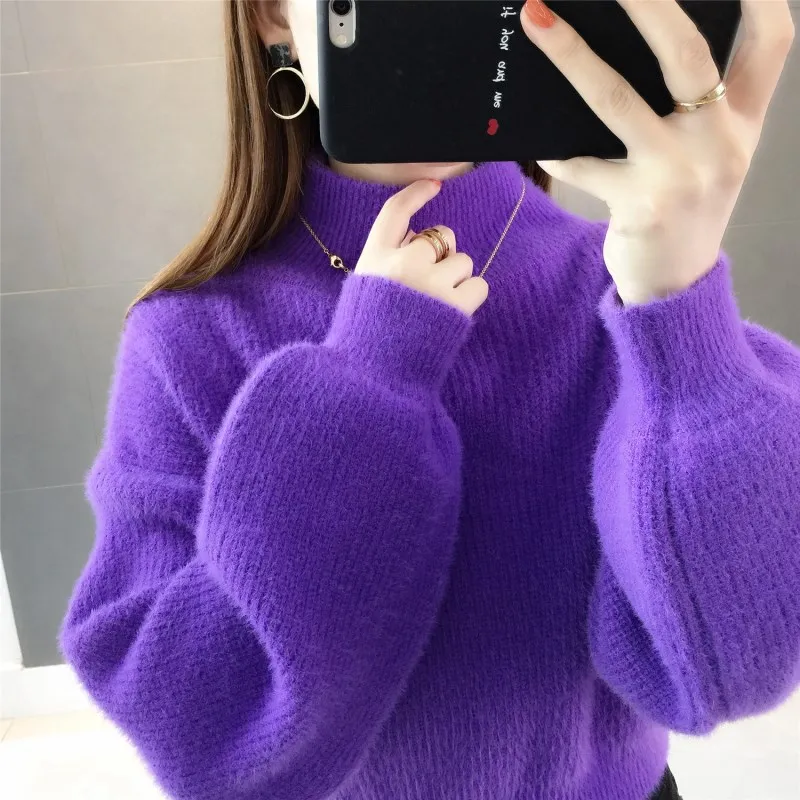 2020 fashion new hot small sweater women's short all-in-one lantern sleeve head loose outside sea h