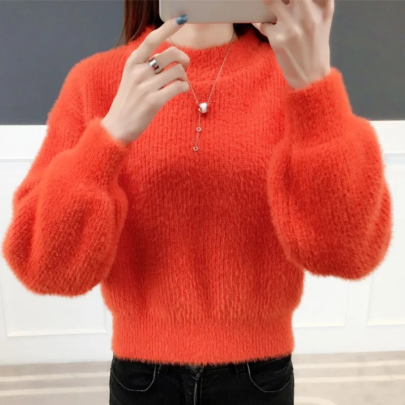 Best Seller 2020 fashion new hot small sweater women's short all-in-one lantern sleeve head loose outside sea h