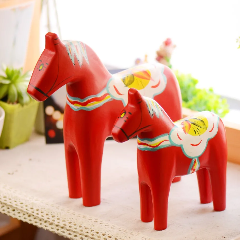 Home Decor Wood Statue Trojans Ornaments Handicrafts Carved Horse Figurines Miniature Crafts Trojan