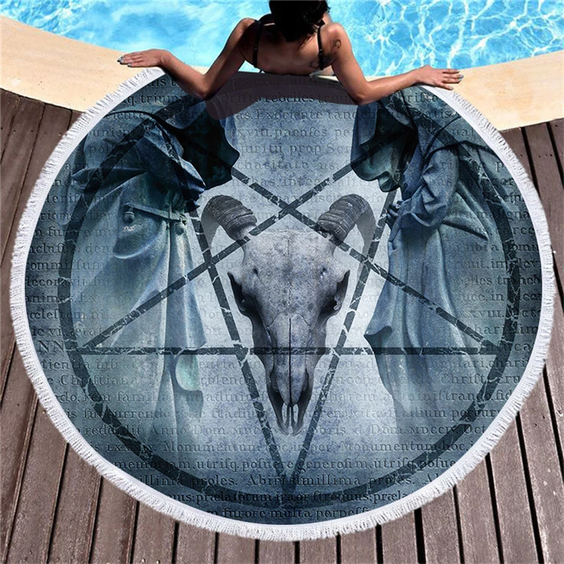 TOP 150cm Round Beach Towel with Tassels Horse Bohemia India Microfiber Thick Large Bath Towel for Adul