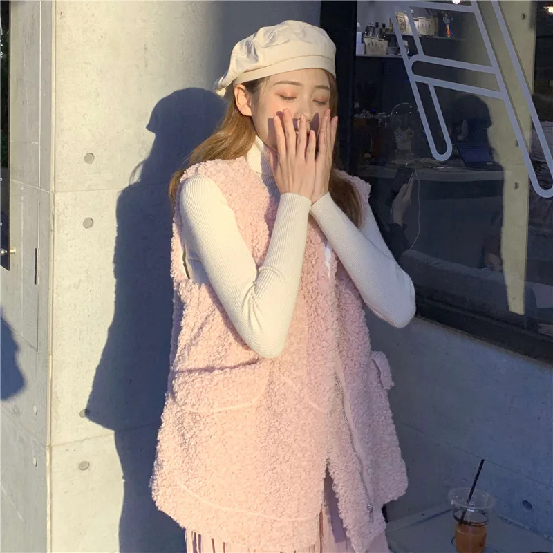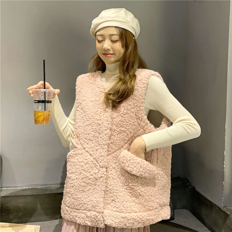 And 5 ~ Autumn And Winter Versatile 2019 New Style Korean-style Loose-Fit Lambs Wool Fur Zipper Ves