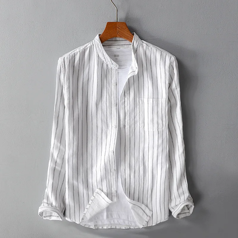 New Shirts Men 2019 55%Linen 45%Cotton Striped Long Sleeve Shirt Breathable Cool Causal Clothes Y16