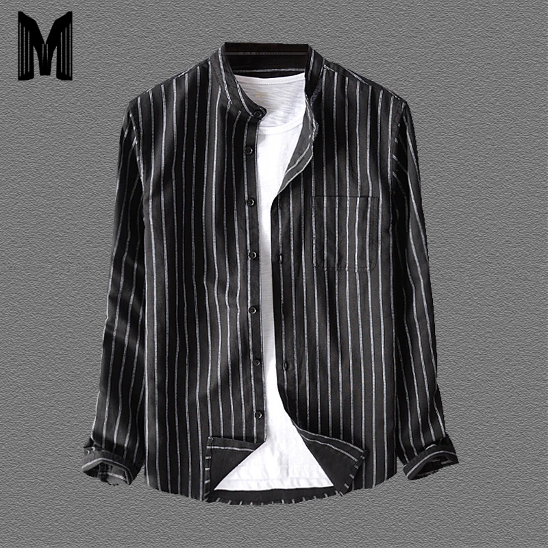ORIGINAL New Shirts Men 2019 55%Linen 45%Cotton Striped Long Sleeve Shirt Breathable Cool Causal Clothes Y16