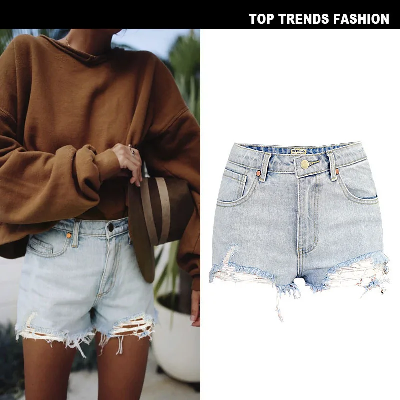 New wear high waist slim body wash horses with water wear broken feet Tassels and mix jeans shorts