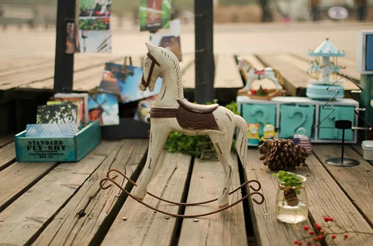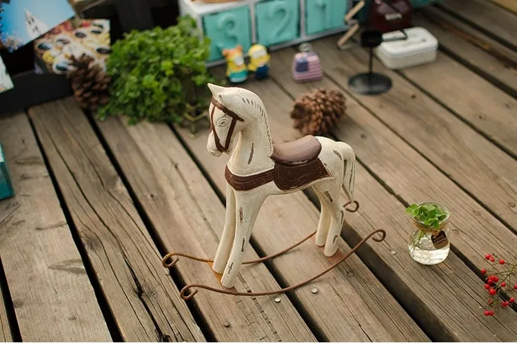 DUNXDECO 1PC Vintage Old Finish Painted Wooden Horse Crafts And Scrapbooking Desktop Display Home D