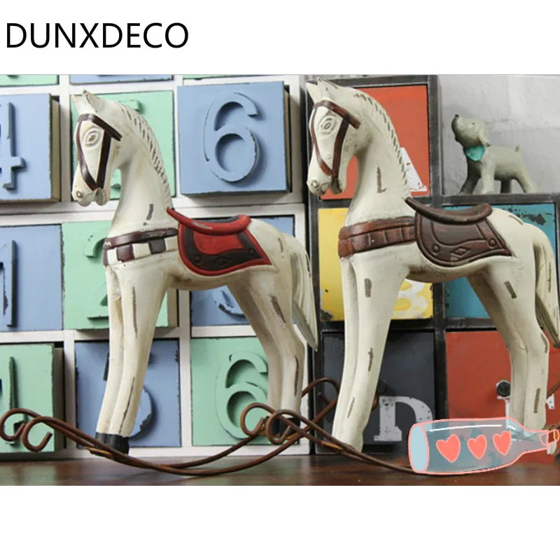 REVIEW TOP SELLER DUNXDECO 1PC Vintage Old Finish Painted Wooden Horse Crafts And Scrapbooking Desktop Display Home D