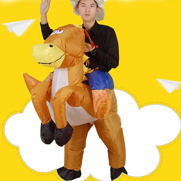 Funny Cowboy Rider on Horse Inflatable Costume Outfit for Adult Dress Halloween Carnival Party Blow